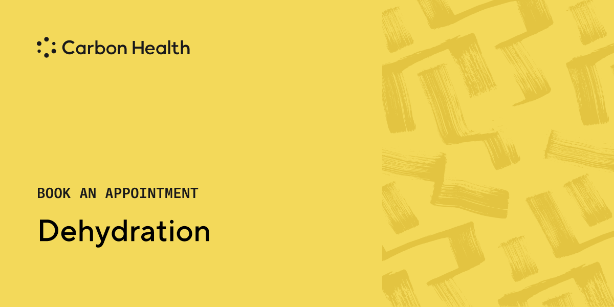 Dehydration, a deficiency of water, causes symptoms of dry mouth, headaches, fatigue, and lightheadedness. High temperatures and overexertion are normally the cause. Water and drinks with electrolytes can treat dehydration in most cases, but severe dehydration should be treated at a nearby Carbon Health.