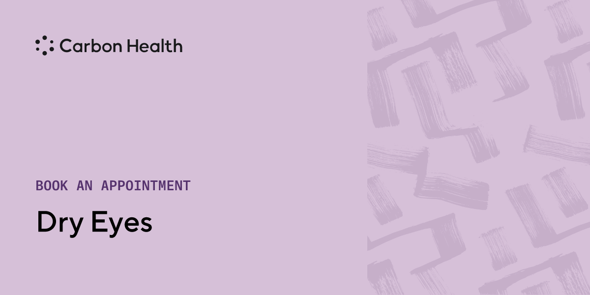 Dry eyes feel itchy and irritated and are often accompanied by red eyes. While most cases of dry eyes will pass on their own, eyedrops and medications might help, especially if you have allergies. Seek medical care at a nearby Carbon Health if the symptoms last longer than a couple of days.