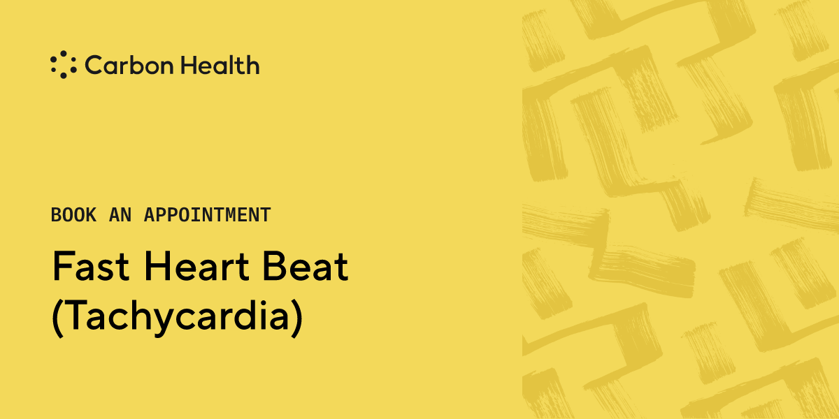 A fast heartbeat, called tachycardia, is any heartbeat that is faster than 100 beats per minute. This is normally due to adrenaline or exertion. If you have tachycardia while resting, visit Carbon Health as this can be a sign of serious underlying issues.