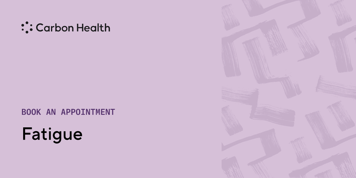 - Fatigue symptoms may include physical exhaustion, mental tiredness, lack of motivation, drowsiness, feeling run-down, muscle aches, headaches, difficulty sleeping, decreased appetite, and irritability. It's recommended to speak with a Carbon Health provider if experiencing persistent or severe fatigue.