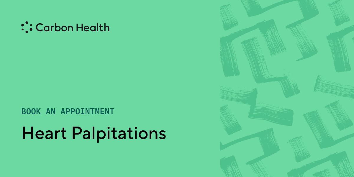 Heart palpitations are fluttering or bumping sensations coming from your heart. In other words, your heart is beating at an unusual tempo. In the vast majority of cases, this is not serious, like exercise, drinking, stress and similar conditions can cause palpitations. Visit Carbon Health if the palpitations are persistent or accompanied by chest pains.