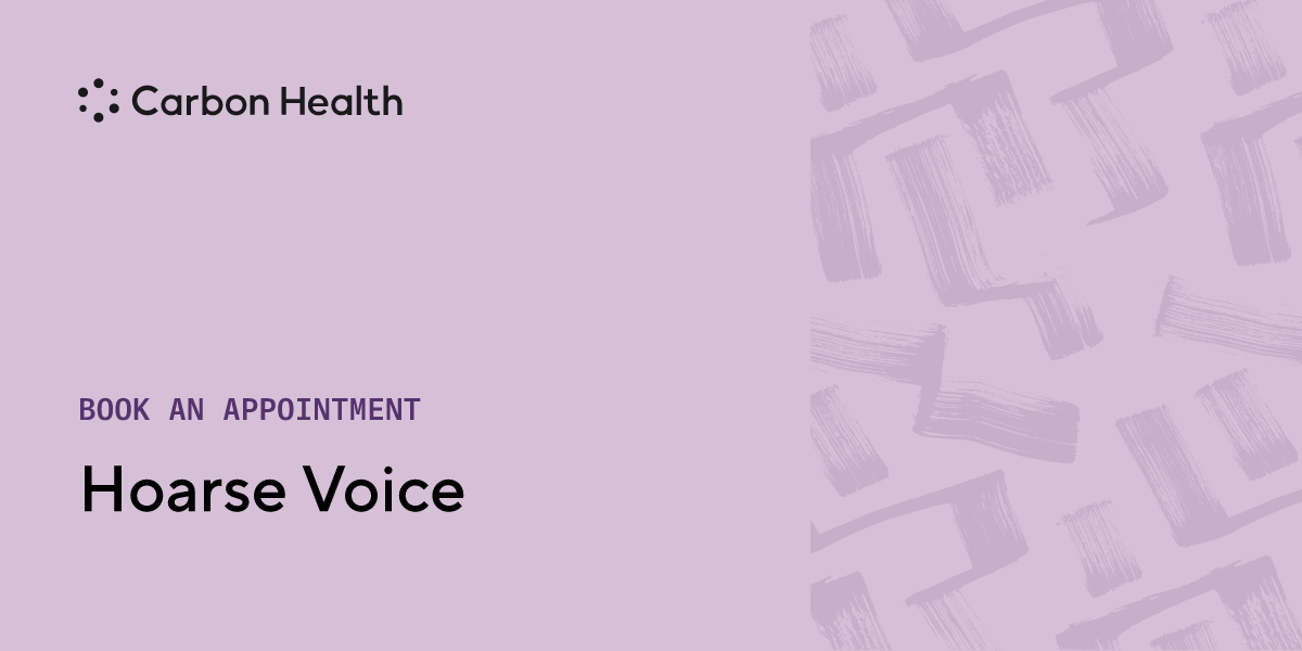 A hoarse voice is normally a symptom of a cold or virus-like strep, though speaking at a loud volume can also cause a hoarse voice. If conditions do not improve within three weeks, see a nearby Carbon Health, as this may be a sign of underlying health issues.