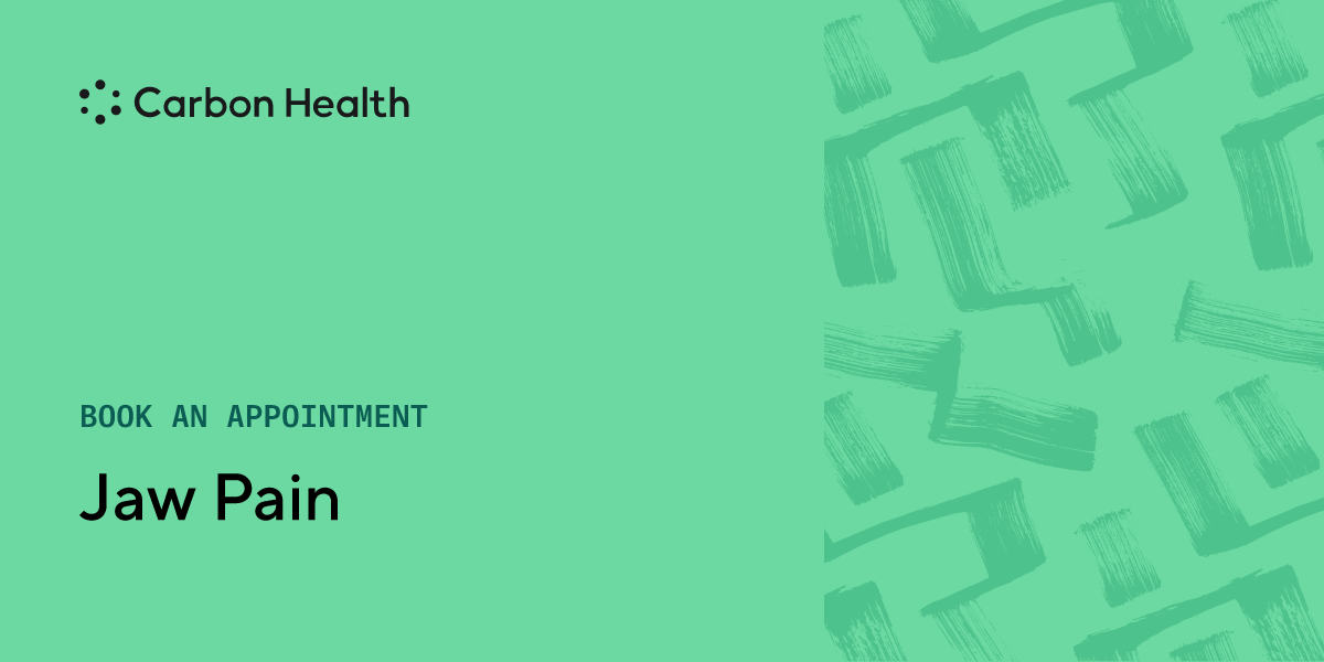 Jaw pain can leave you struggling to eat or talk. Many cases of jaw pain are a result of temporomandibular joint disorders (TMJ), like when a person grinds their teeth while asleep. This joint connects the jaw to the skull and can be a major source of pain if damaged. Schedule an appointment with the nearest Carbon Health if you're suffering from jaw pain.