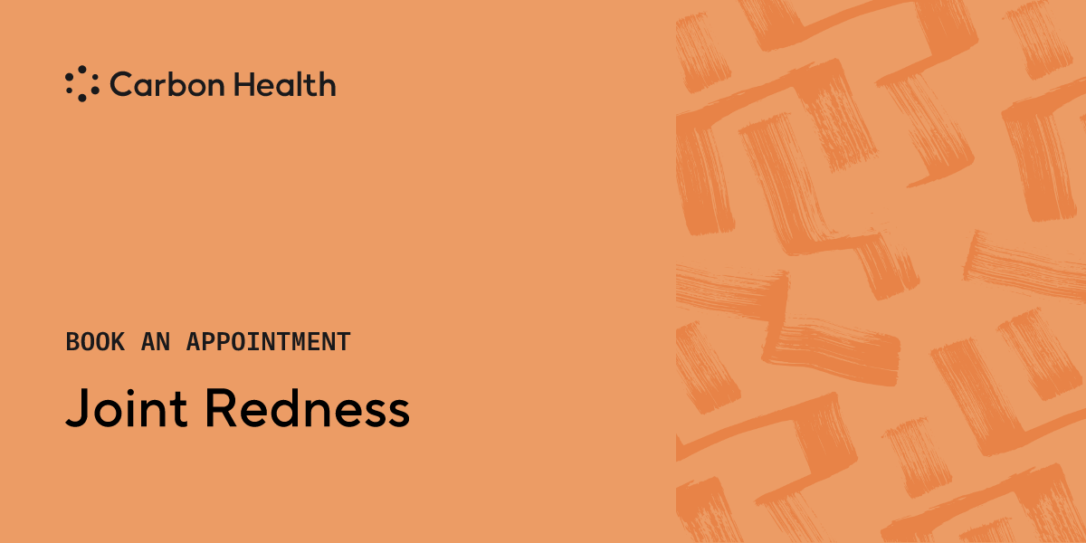 If your joints are red and swollen, it means they're inflamed. It's a common symptom of arthritis, but infection and injury can also cause this symptom. Schedule a visit at a nearby Carbon Health if you're experiencing persistent or painful joint swelling.