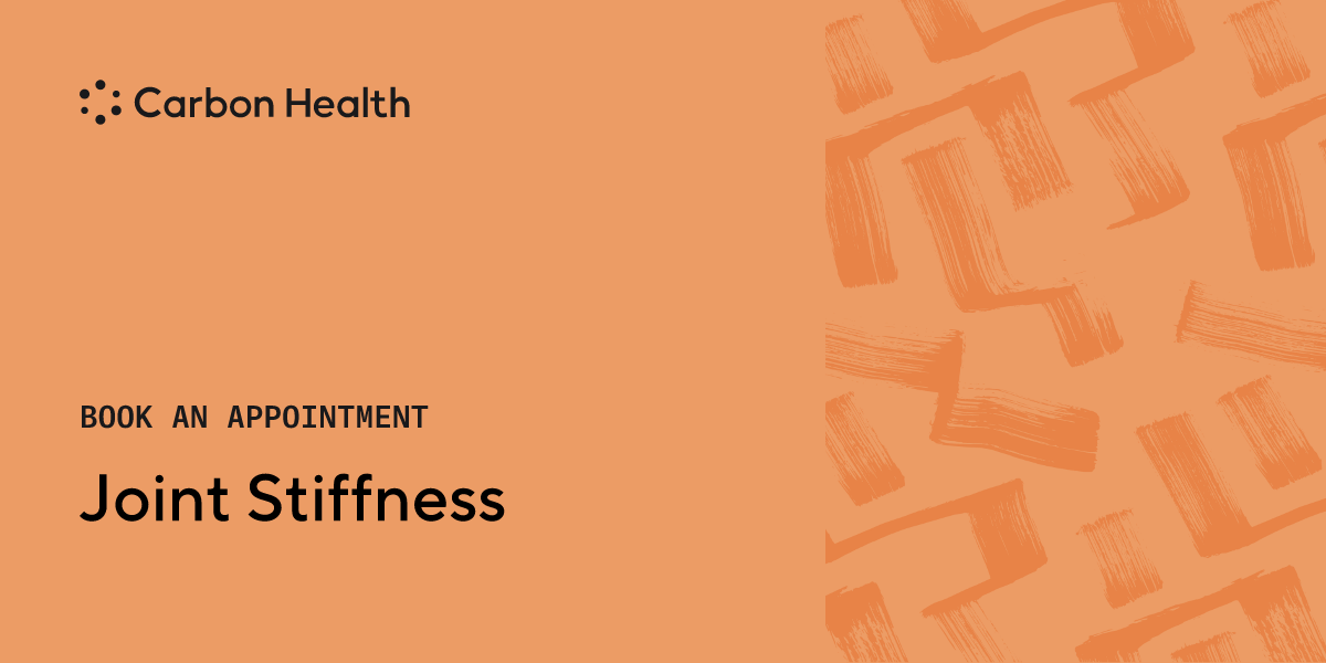 Joint stiffness (Arthralgia) is when your joints are unusually hard to bend, and it can make everyday activities painful and difficult. Joint stiffness does not always mean you have arthritis, but it is a possibility. Schedule a visit to a nearby Carbon Health if you're experiencing regular or severe joint stiffness.