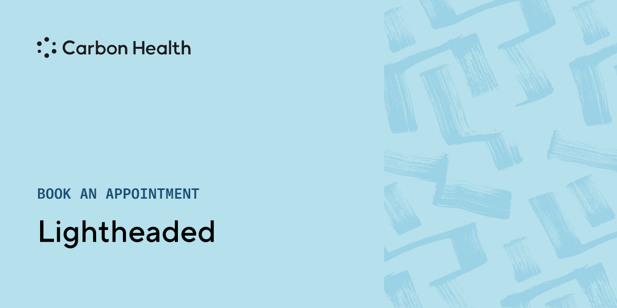 Lightheadedness is an airy, floaty feeling in your head that might make you feel dizzy or like you're going to pass out. Dehydration, rapid movement, and shock are common causes of lightheadedness. If your lightheadedness won't go away, or if it feels severe and is accompanied by symptoms like a painful headache, seeks immediate medical care at Carbon Health.