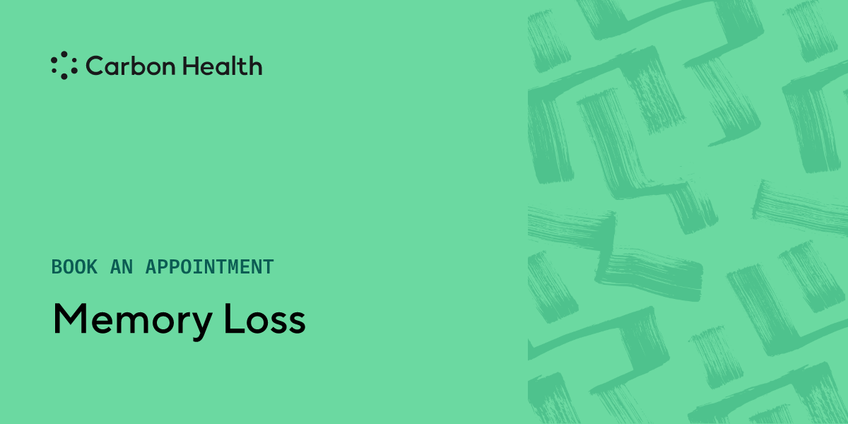It's common to forget some things, but out-of-pattern memory loss that disrupts your life is cause for concern. While some forgetfulness comes with age, memory loss that impacts daily activities is not a normal part of growing older. Schedule an appointment at a nearby Carbon Health if you're experiencing unusual or worsening memory loss.