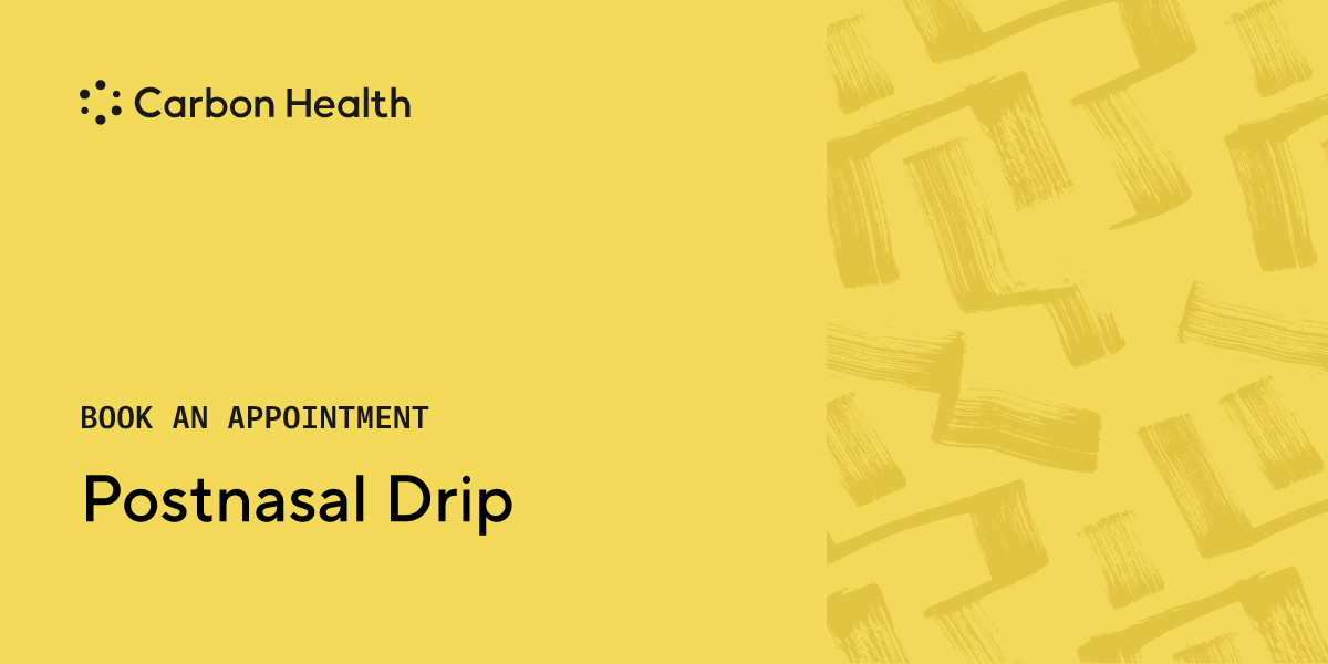 Postnasal drip is when mucus slides down your throat, causing it to feel congested and irritated. It often leads to phlegm-filled coughs. Like a runny nose, many different issues can cause this, including colds and allergies. See a doctor at a nearby Carbon Health if symptoms don't improve within a couple of weeks.