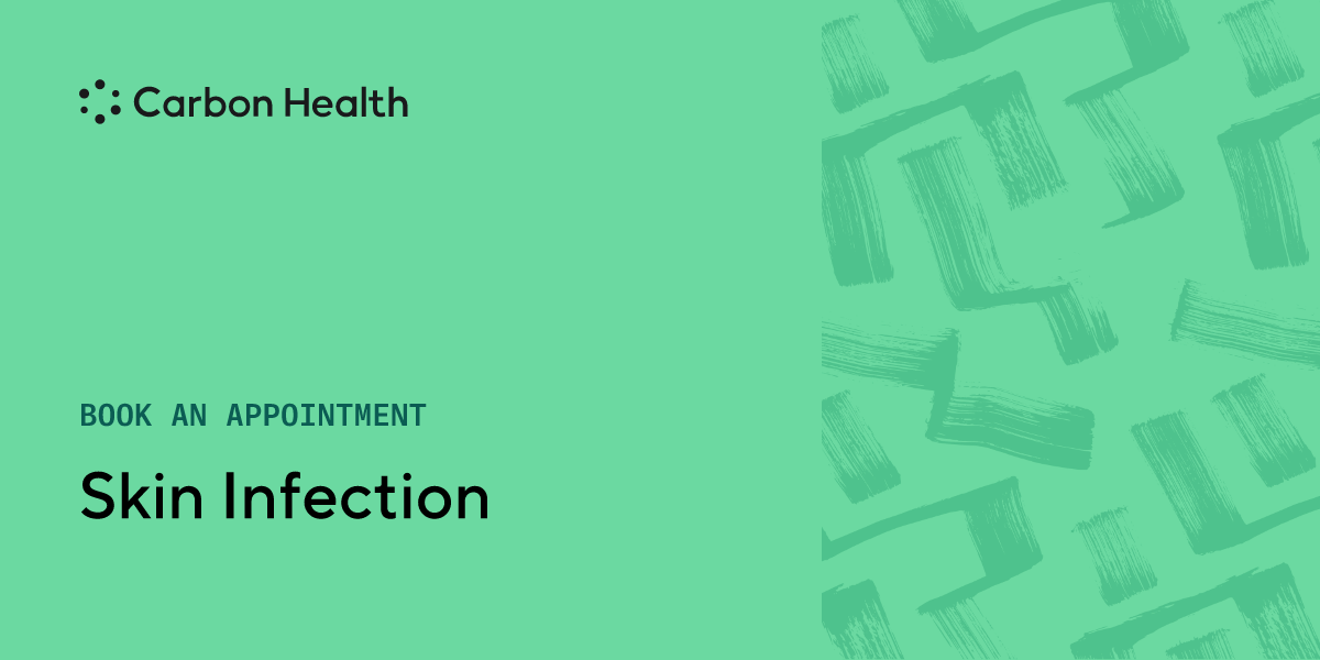 Skin infections can have a wide range of causes, but should always be examined by a medical professional at a nearby Carbon Health. They usually require antibiotics to treat, and it's important to make sure the infection has not spread before treatment, as this can cause serious complications.