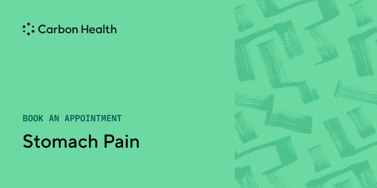 Stomach pain is any sort of discomfort or pain in the abdomen, the area between your chest and pelvis. Stomach pain that is excessive or lasts longer than a day should be examined by a medical professional. Seek immediate care at a nearby Carbon Health if the pain occurs after an injury, or if it's accompanied by severe symptoms of nausea, fever, or vomiting.