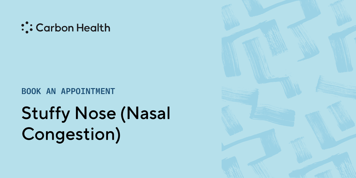 A stuffy nose isn't from mucous clogging it but from inflammation of the tissue and blood vessels lining the nose. This is why blowing your nose doesn't clear it. Congested noses are rarely serious, usually a result of allergies or colds. Talk with a nearby Carbon Health if your symptoms persist longer than three weeks or are accompanied by pain or discharge.