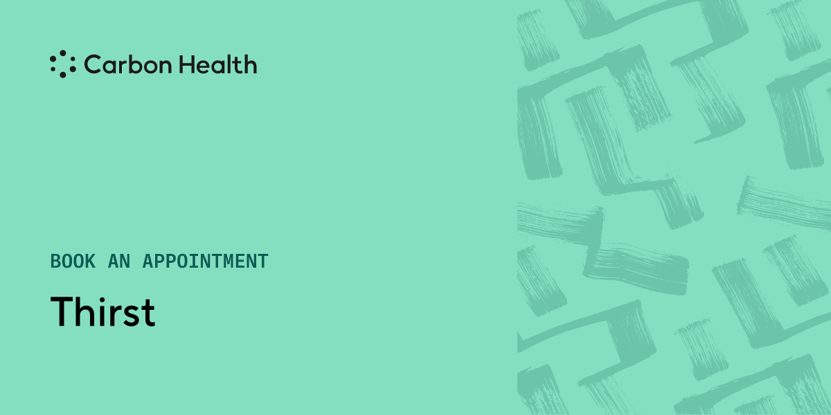 Thirst develops when your body thinks it needs more water. Normally, the average person's thirst can be quenched with 8 servings of 8-ounce glasses of water a day. If your thirst feels excessive or cannot be quenched, it could be a sign of underlying issues like diabetes. Contact Carbon Health to discuss concerns you may have about your thirst.